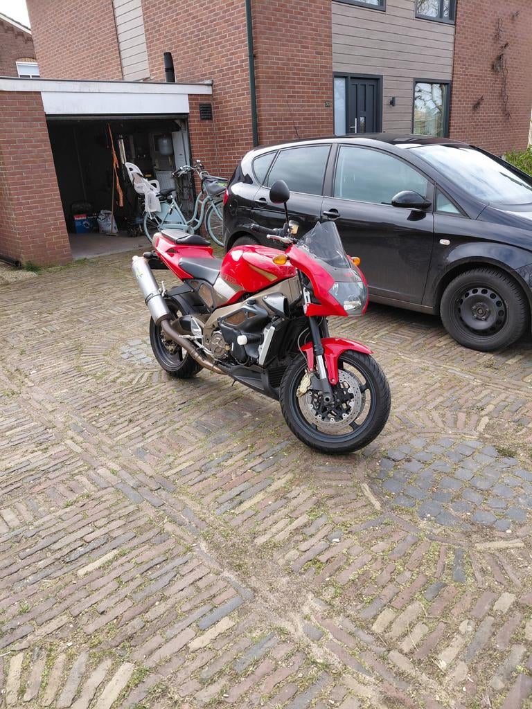Te koop: aprilia tuono uit 2004. Een prima machine zonder bijzonderheden, waar ik altijd veel plezier mee heb gehad. Ik wil graag overstappen op een groter model. Deze motor heeft 125 pk en is daarom