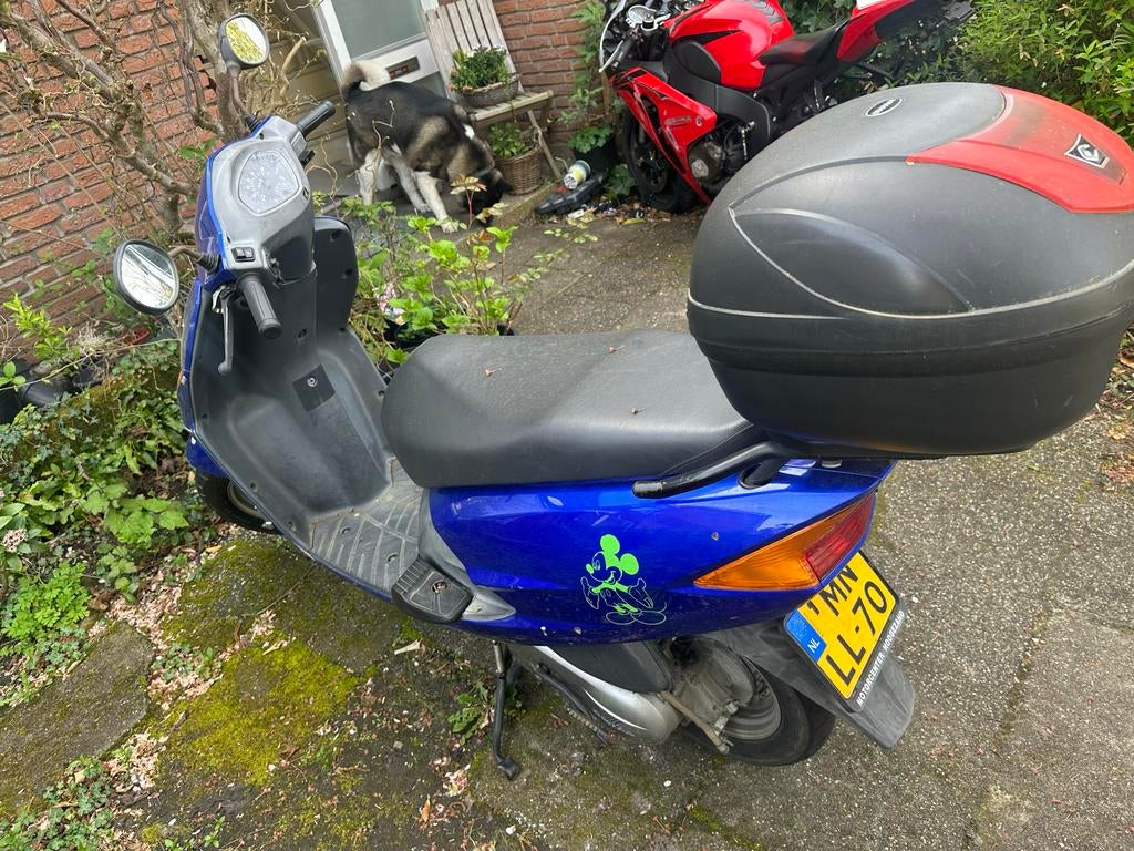Een blauwe honda lead motorscooter met een topkoffer. Perfect voor stad rijden 19500km gereden