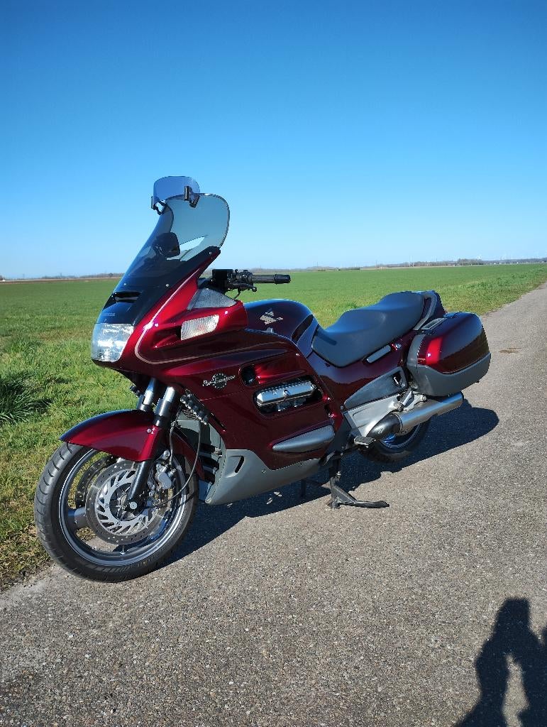 Te koop een mooie st1100 pan european. Bouwjaar 1998 kilometerstand 51500km kleur r114c-u wineberry-red voorzien van: -verhoogde kuipruit/windscherm verstelbaar -dagrijverlichting -garmin zumo navigat