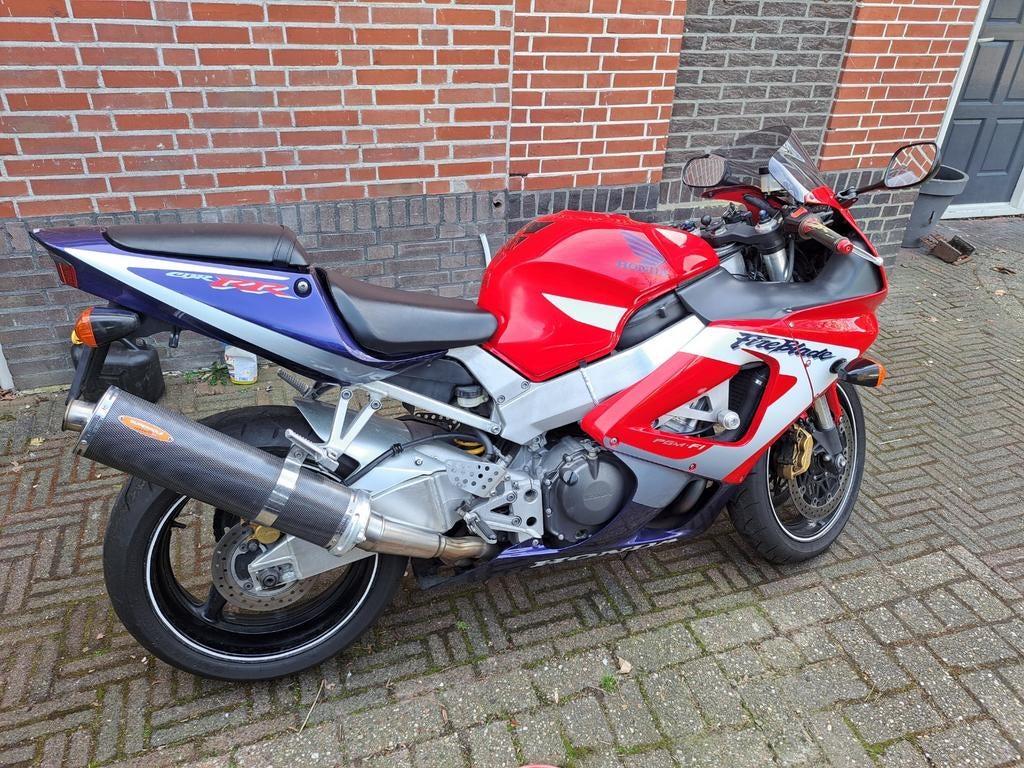 Te koop: honda fireblade uit 2002 in prima staat. Deze sportmotor is altijd perfect onderhouden, heeft jaarlijks zijn beurten gehad en alle vloeistoffen zijn elk jaar vervangen. Banden en ketting/tand