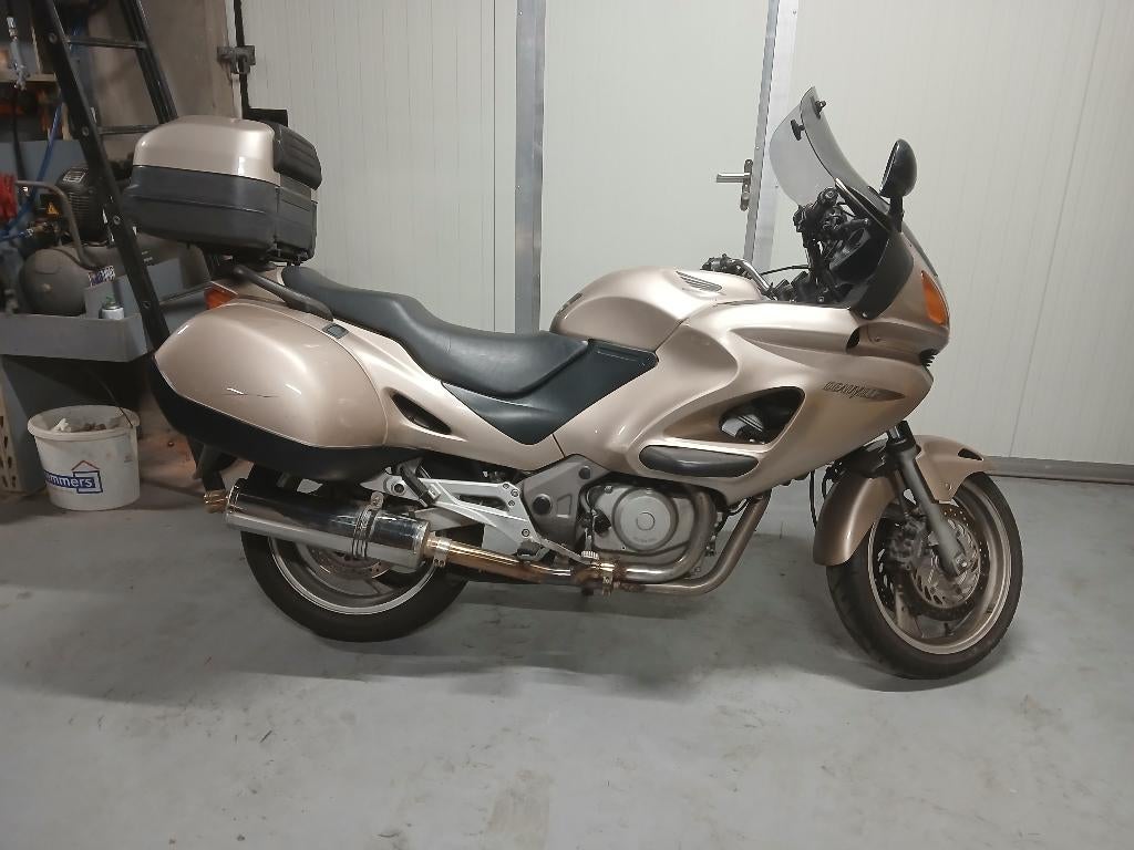 Leuke zuinige motor.bouwjaar 2002 km stand 78875. Vorig jaar alle vloeistoffen en filters vervangen en nieuwe accu geplaatst. Daarna nog maar +/_ 1000 km gereden.is uitgevoerd met brede zijkoffers dus