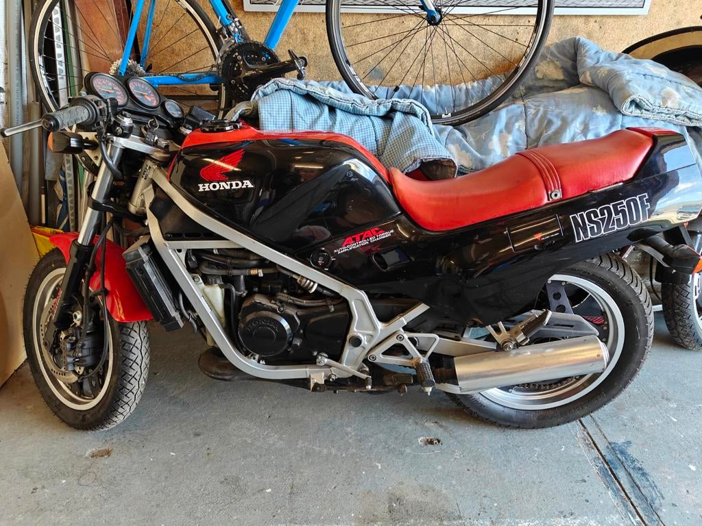 Te koop een honda ns250f leuke gave tweetakt motor, staat al even stil, werkend weg gezet. Nieuwe banden.