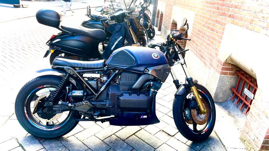 Echt een eye-catcher met waanzinnig geluid! De bmw k75s is in 2025 technisch volledig gereviseerd door een erkende motorzaak in amsterdam! (Facturen aanwezig) heel veel custom accessoires zoals: - cus