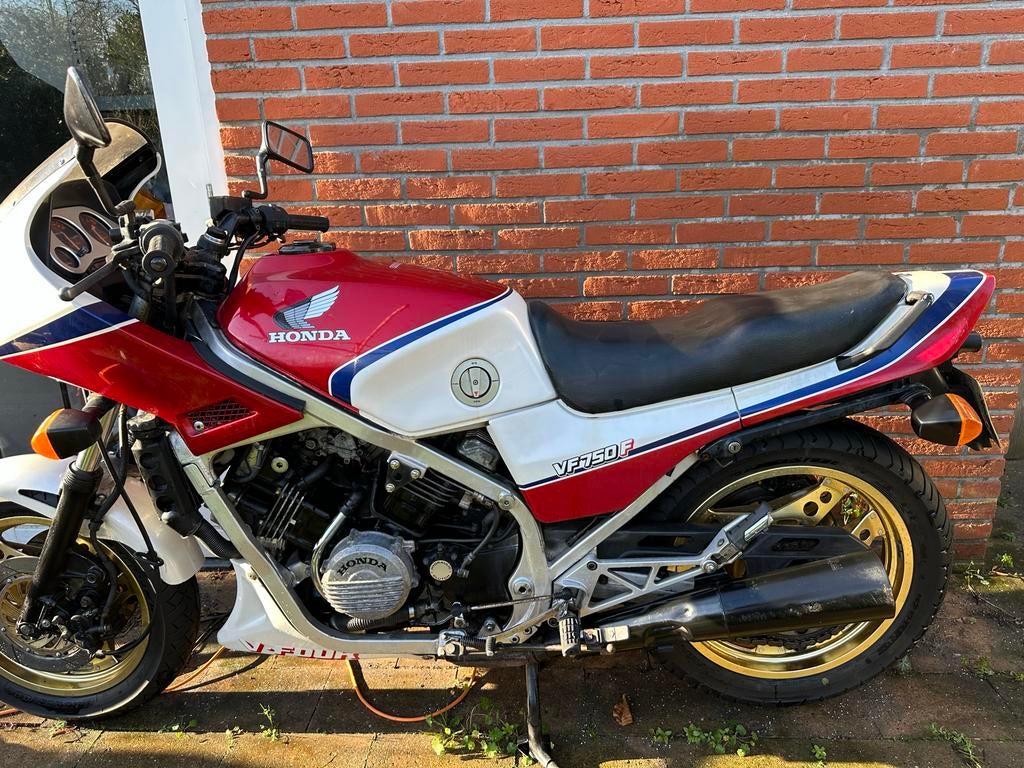 Te koop aangeboden: honda vf750f uit 1987. De motor loopt prima en start altijd zonder problemen. Er zit een yss schokbreker onder voor verbeterde rijprestaties. Het startknopje is afgebroken, maar ee