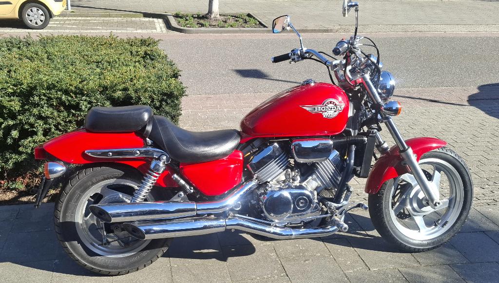 Honda vf 750 c magna rc43 chopper / cruiser oldtimer de motor is in goede toestand. Lak is in goede staat en origineel er zit een nieuwe accu in. Naar voren verlegde voetsteunen. Motor is momenteel af