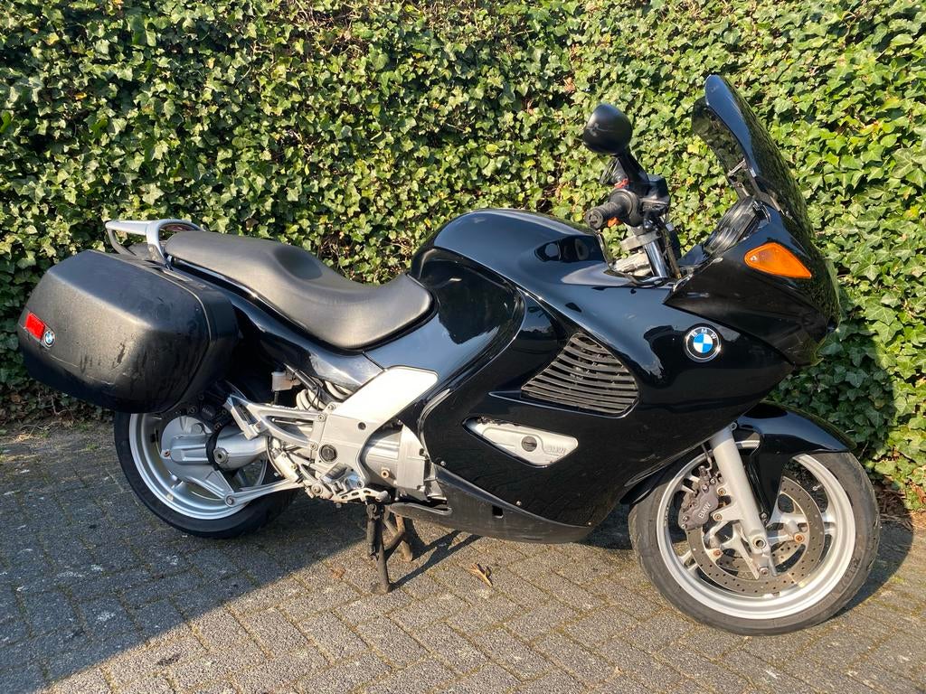 Bmw k1200rs, 49.000 Kilometers. Hij was ooit marrakech rot, maar is vrij liefdeloos overgespoten in zwart. Loopt mooi, banden en remschijven zijn nog goed, de voorband kan nog even. De motor is goed o