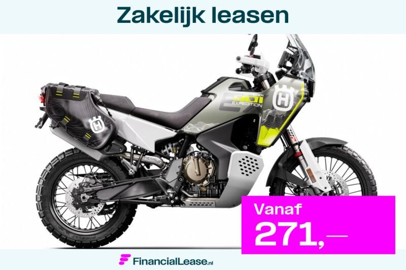 Husqvarna norden 901 expedition segment: all-road nieuw: ja modeljaar: 2026 kleur: livery vermogen: 77 kw (105 pk) gvw: 214 kg leaseprijs: vanaf € 271 p/m (financial lease, 72 maanden); informeer