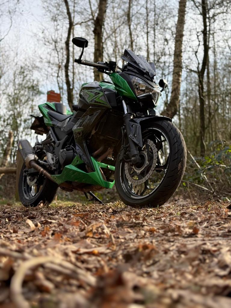 Merk: kawasaki type: z300 abs bouwjaar: 27-02-2016 km stand 50064 vermogen 29 kw / 39 pk / 11.000Rpm cilinderinhoud: 296cc massa ledige voertuig: 157kg de motor is voorzien van een sportieve uitlaat e
