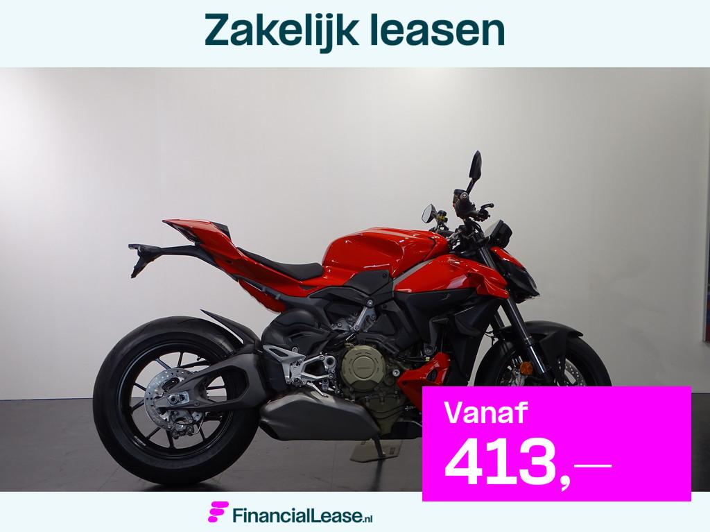 Ducati streetfighter v4 nieuw: ja modeljaar: 2026 kleur: rood vermogen: 157 kw (214 pk) gvw: 189 kg fabrieksgarantie: 24 maanden leaseprijs: vanaf € 413 p/m (financial lease, 72 maanden); informe
