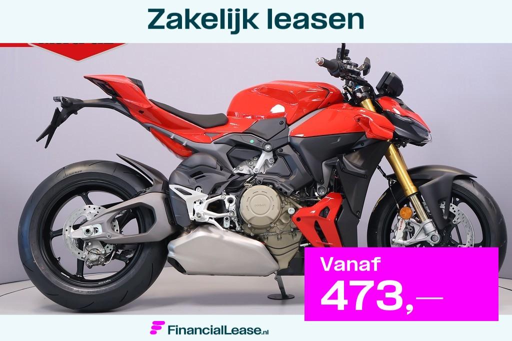 Ducati streetfighter v4 s nieuw: ja modeljaar: 2026 kleur: rood fabrieksgarantie: 24 maanden leaseprijs: vanaf € 473 p/m (financial lease, 72 maanden); informeer naar de mogelijkheden en voorwaar