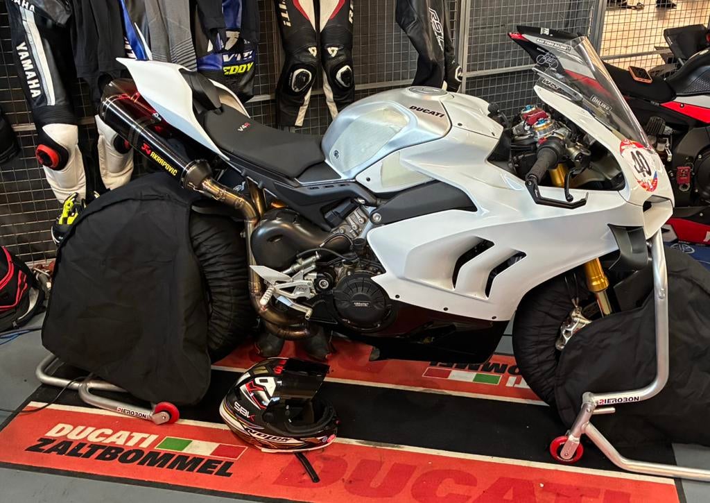 Ducati v4r uit 2023 met circa 3000km. Geen nl kenteken wel papieren en een btw fiets. Alle originele onderdelen zijn er ook bij aanwezig. Extra set oz piega r velgen met t-drive remschijven tegen meer