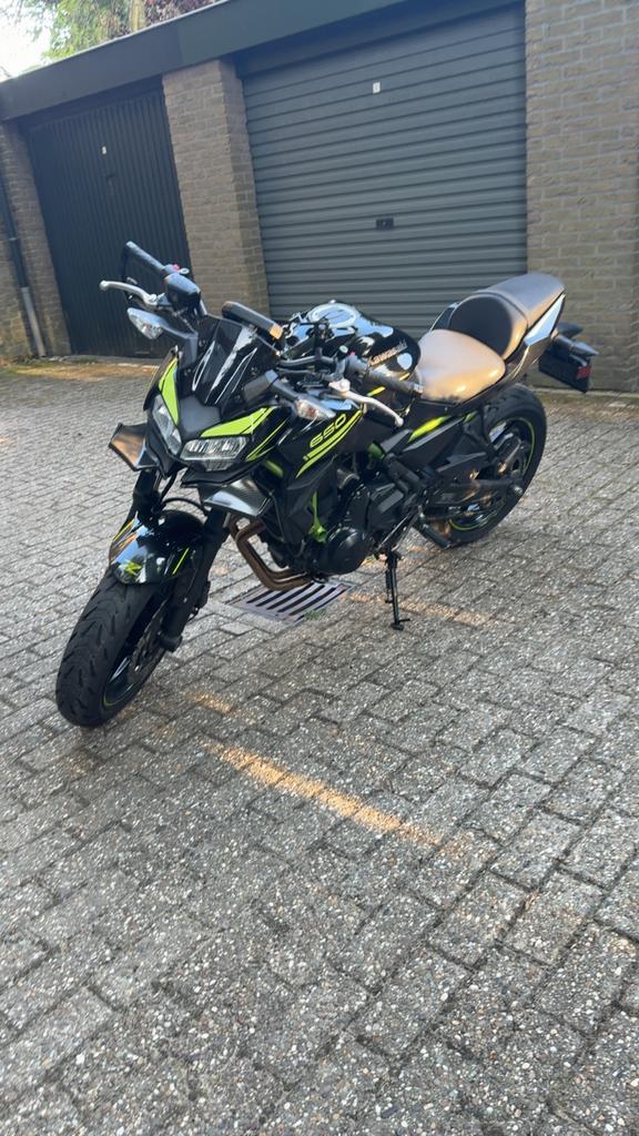 Kawasaki z650 (2020) te koop mooie kawasaki z650 uit 2020, uitgevoerd in zwart met groene accenten. De motor is voorzien van een dominator uitlaat, wat zorgt voor een sportief geluid en uitstraling. D