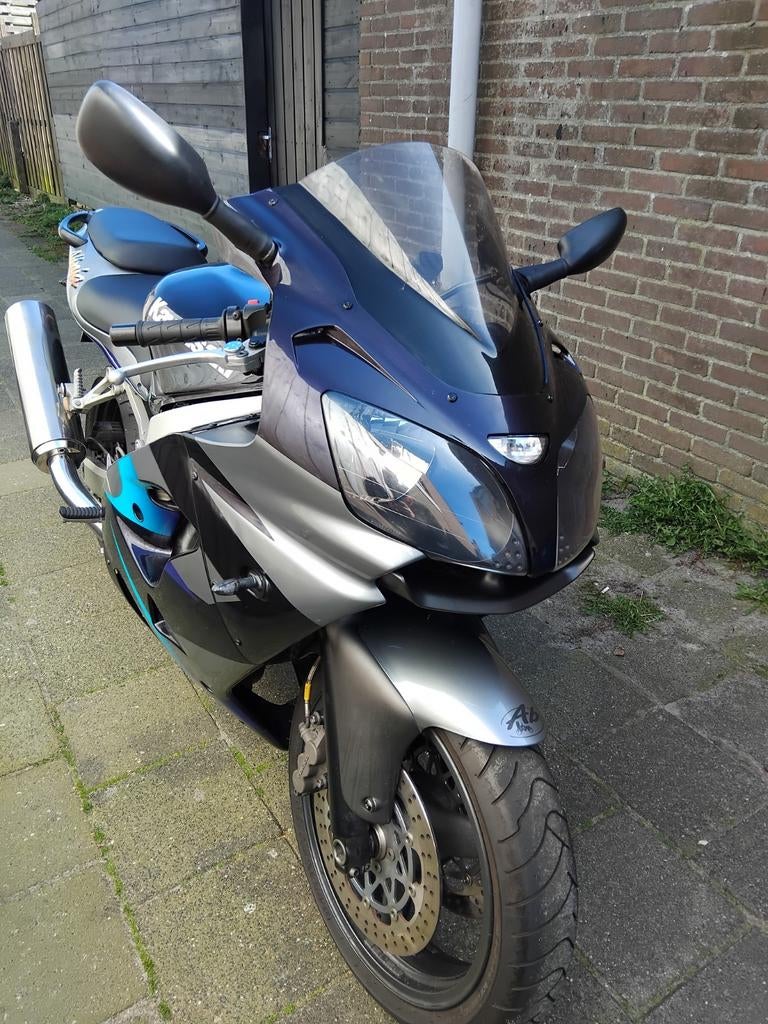 Kawasaki ninja zx9r uit 2001.72000 Kilometer op de teller.prima motor.nieuwe beurt gehad.wordt nog mee gereden.