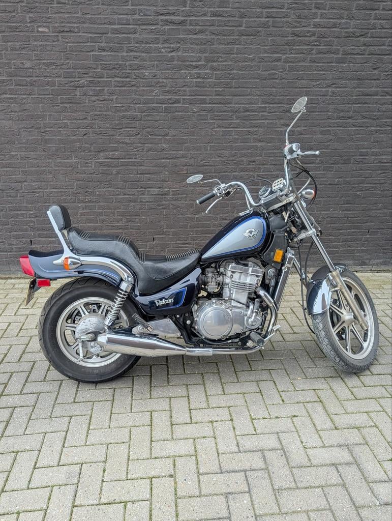 Te koop aangeboden: een goed onderhouden kawasaki vulcan en500 uit 1991. Deze klassieke chopper is perfect voor liefhebbers van retro motoren en comfortabele ritten. De motor is in goede staat en klaa