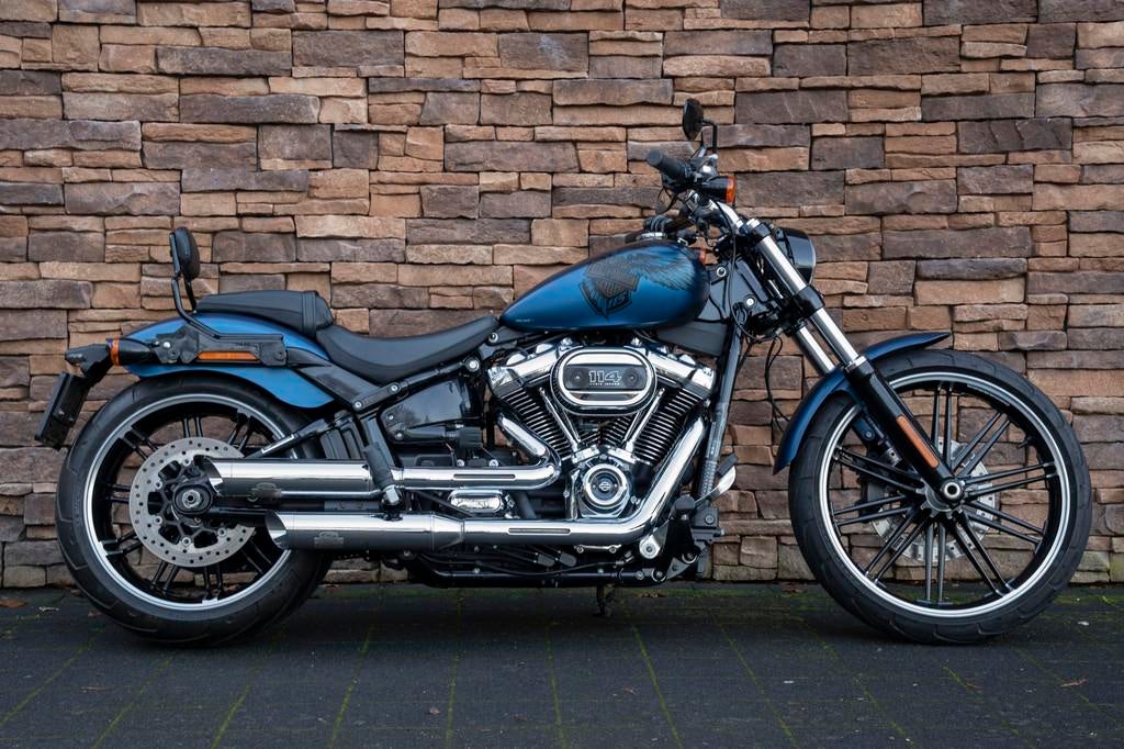 11690 km. Bouwjaar: 2018. In zeer goede staat verkerende harley-davidson fxbrsanx breakout anniversary 114 van 2018 in de speciale gelimiteerde kleur legend blue denim: m8 v-twin 114 cu / 1.868 Cc; 6.