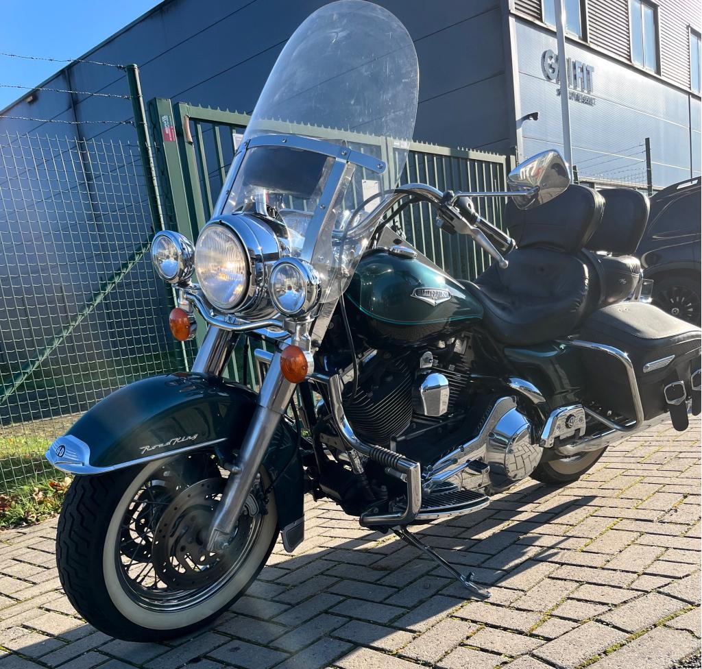 Mooie harley roadking bouwjaar is 2002 met 38000 mijl op de teller vol met opties, zoals: bestuurders backrest bijrijders backrest snel afneembaar windscherm, snel afneembaar white walls gescheiden ri