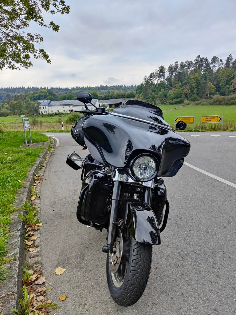 Flht-standaard - 1450 cc - carburateur - le pera duo zadel - verlengde koffers - aquatic bluetooth radio (bediening op het stuur) - speakers in kuip en beenkappen - 33200 km - goede dunlop harley davi