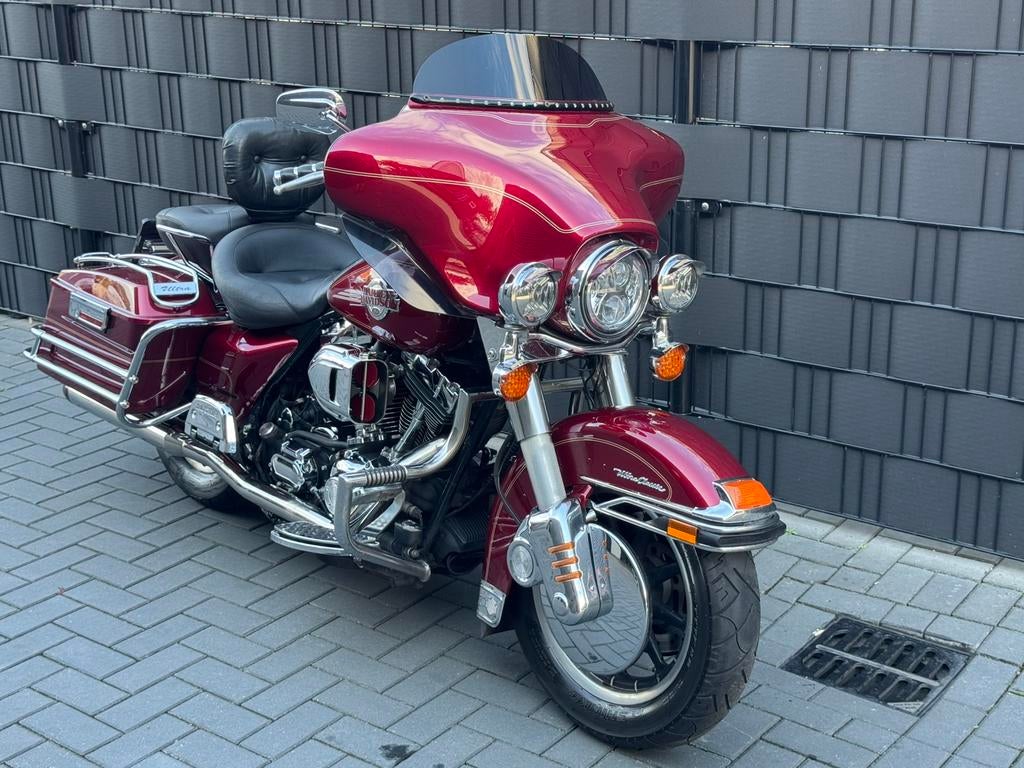 Zeer mooie harley davidson tour 88flhtcui electra glide ultra classic van 2005, bordeaux rood, dual zit, zeer veel chroom, rinehart dubbele uitlaat, harman kardon, getuned, xenon, verstalers, rugleuni