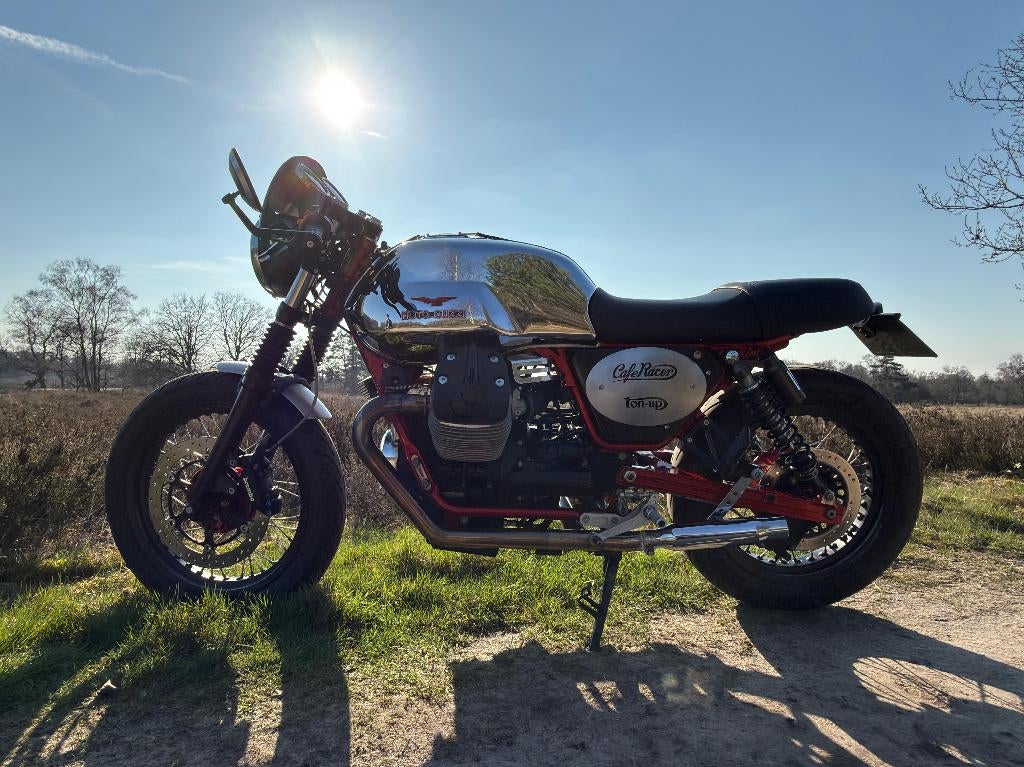 Omdat ik meer kilometers ga maken voor mijn werk en door een gebrek aan ruimte moet ik hem dan toch weg doen... Dus bij deze te koop aangeboden: mijn moto guzzi v7 racer uit 2012. Een bijzondere en ze