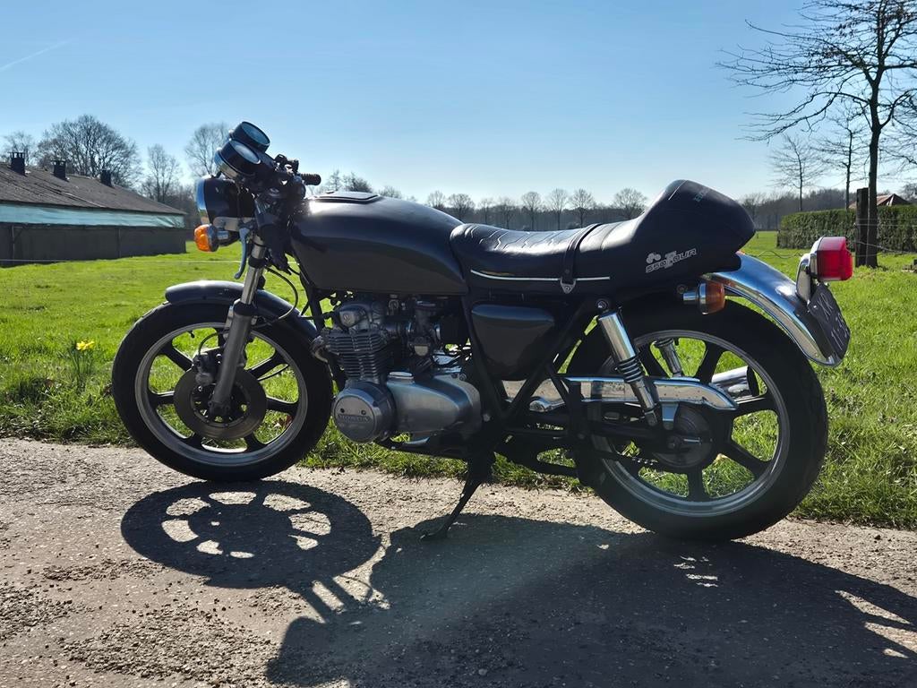 Nette honda cb550f uit 1978, een echte klassieker voor liefhebbers. De motor is voorzien van zeldzame lester-wielen met nieuwe lagers, remschoenen en remblokken. De motor is jaren geleden aangeschaft