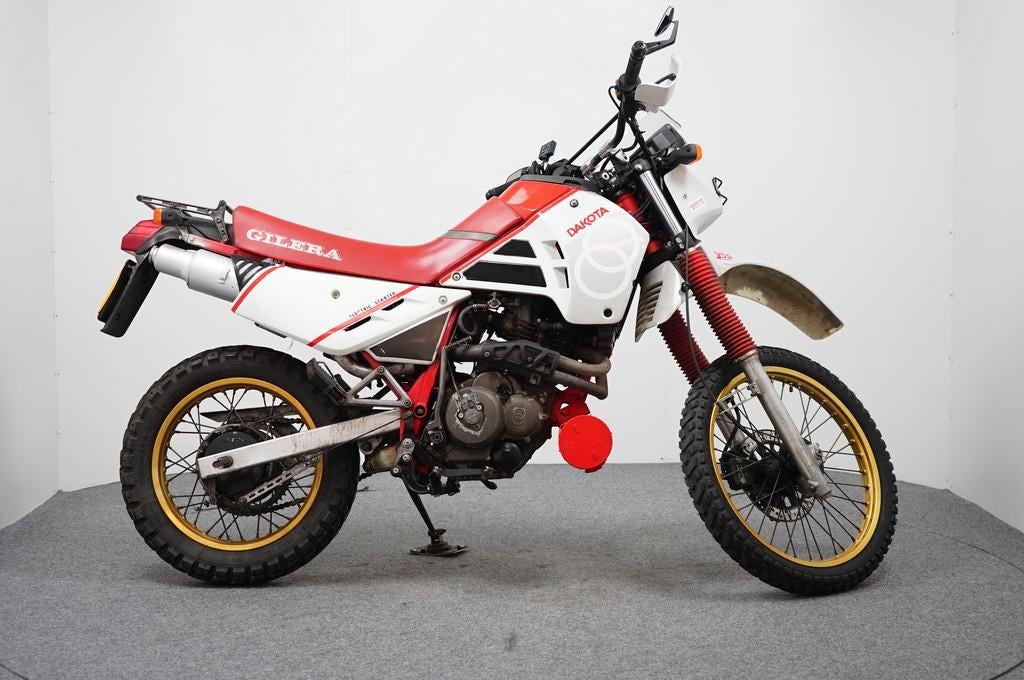 40320 km. Bouwjaar: 1987. Een gilera dakota 500 met bagagerek, electrische start, 12 v aansluiting en handvatverwarming. Transmissie: handgeschakeld kleur: wit aantal cilinders: 1 garantie: geen btw/m