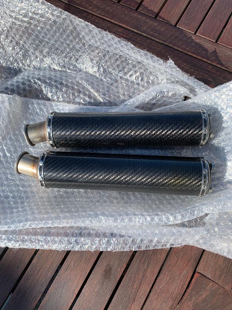 Complete uitlaten met koolstofdemper van jl lomas aprilia rs 250 type side by side (zie foto op de fiets) beschadigderechteruitlaat (zie foto) referentie: aprilia rs, rs250