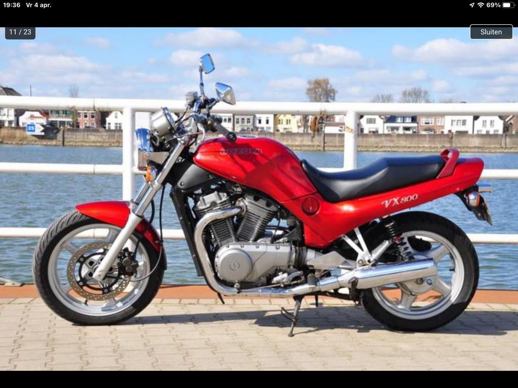 Mooie suzuki vx800, een erg fijn rijdende toermotor met vtwin (van de intruder) en cardanaandrijving, dus geen versleten kettingenen tandwielen meer! 2 Jaar geleden zijn de carburateurs gesynchronisee