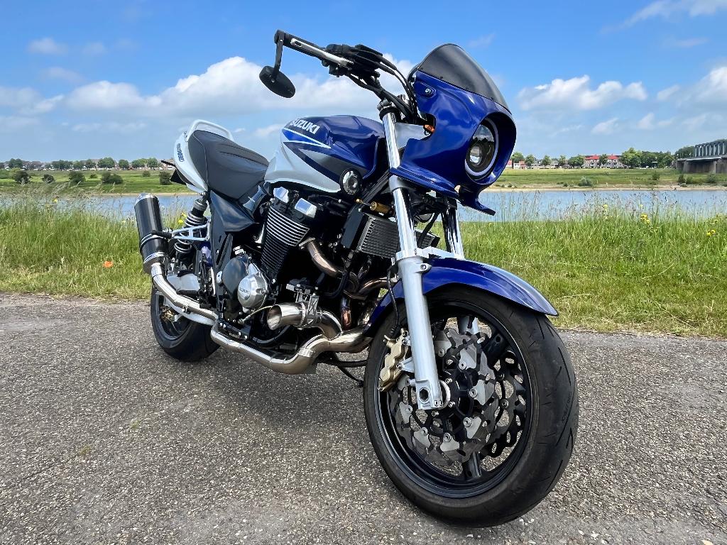 Deze unieke gsx1400 van 2002 is recent gereviseerd en voorzien van een krachtig turbosysteem van proboost, met bijna een verdubbeling van vermogen! Heerlijk sturend door aangepaste voor- en achterveri