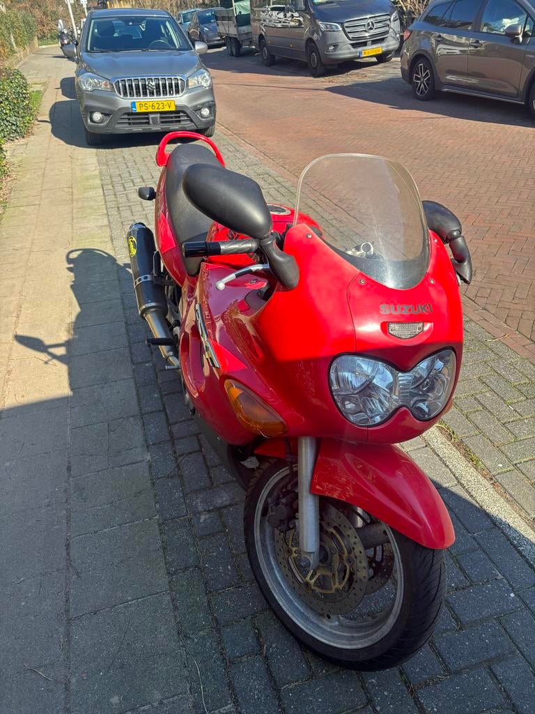 Te koop aangeboden: suzuki katana gsx 600f uit 2000. Rijdt geweldig en is altijd goed onderhouden. Wat schade aan de kap rechts zie foto. 43200 Km op de teller. 63 Kw / 86 pk koppel 59,8 nm