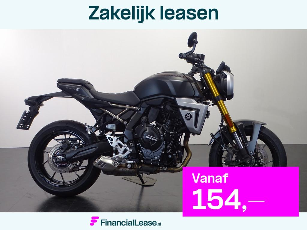 Suzuki gsx gsx-8t nieuw: ja modeljaar: 2025 kleur: mat black vermogen: 61 kw (83 pk) gvw: 201 kg fabrieksgarantie: 72 maanden leaseprijs: vanaf € 154 p/m (financial lease, 72 maanden); informeer