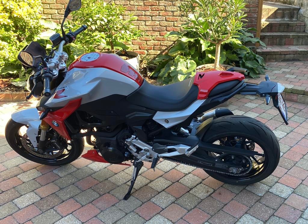 Bmw f900r de 2020 avec 6379kms. 77Kw-105cv. Bicylindre en ligne, assez coupleux. 4 Modes de conduite, quickshifter, capot de selle, alarme, sacoches latérales rouges et selle confort avec surpiqûres r