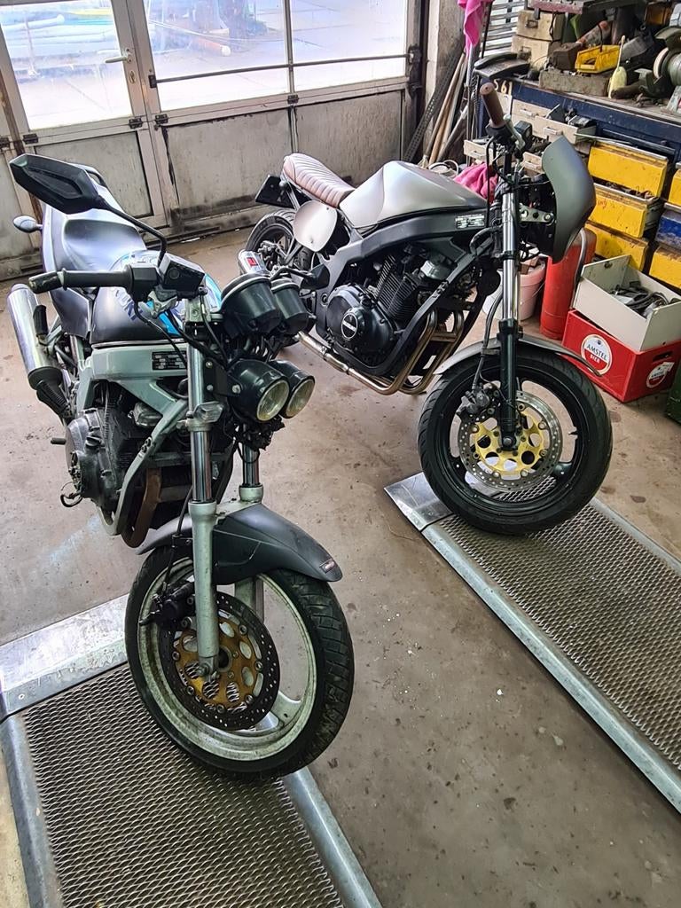 Drie suzuki gs 500 motoren. 2 Met kenteken 1 zonder. 1X omgebouwd naar cafe racer. Andere orgineel. Cafe racer lopend weg gezet. Maar liep niet top. De standaard suzuki heeft ook gelopen maar al 4 jaa