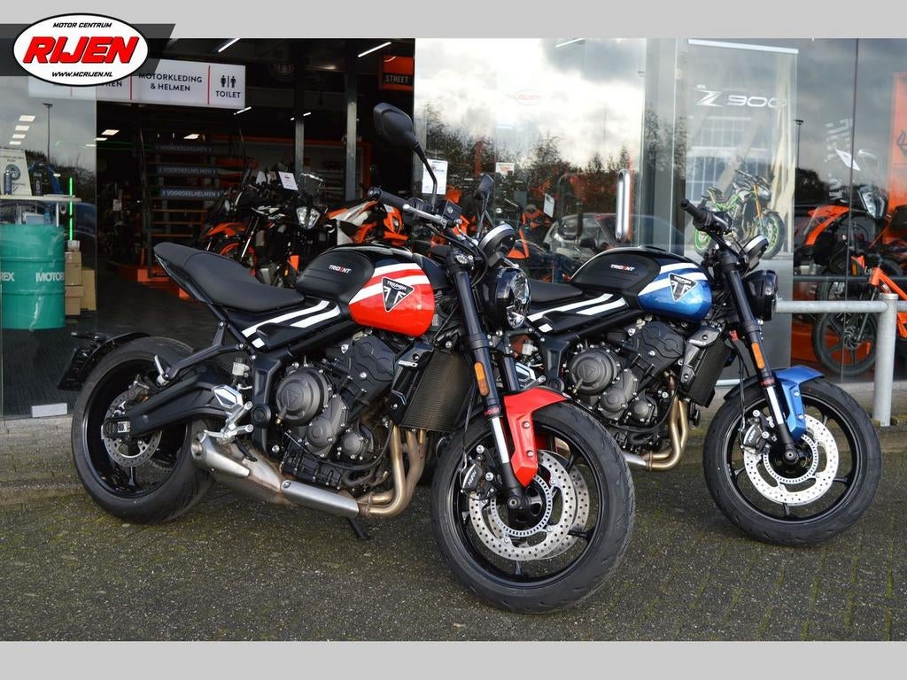 Nu tijdelijk in voorraad 2 triumph trident 660 met 150km. Een exemplaar in het blauwmetallic/zwart en een in het roodmetallic/zwart. Deze motoren zijn uitgerust volgens de 2026 specs: quickshifter up