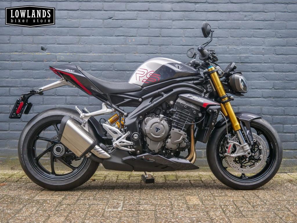 De triumph speed triple 1200 rs in de opvallende kleur granite / diablo red is een high-performance naked bike die kracht, technologie en precisie combineert. Dit model staat bekend als een van de mee