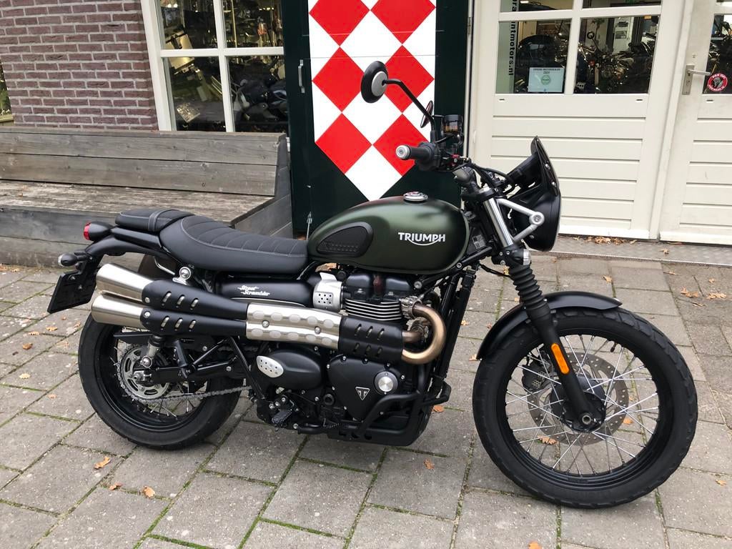 15442 km. Bouwjaar: 2019. Zeer mooie bijna nieuwe triumph street scrambler 900 met abs uit 2019 in de goede kleur matt khaki green kleur: matt khaki green bouwjaar: 2019 kilometerstand: 15400km... Mod