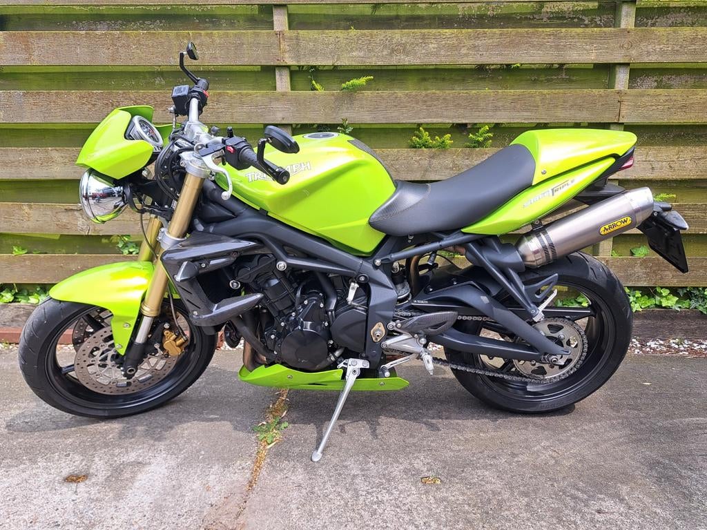 Te koop: prachtige triumph street triple 675 motorfiets uit 2009 met lage km stand! In het mooie felle roulette green. Gaat weg ivm aanschaf andere motor. De motor heeft een origineel verdikt stuur, o
