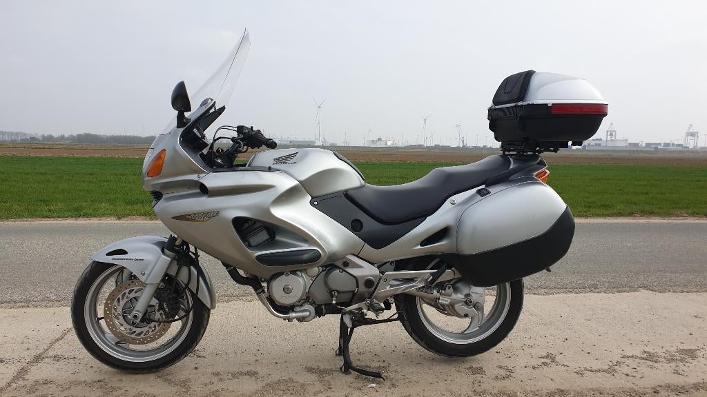 Honda deauville 650 cc van 2003 met 34.500 Km (origineel). Met cbs-remsysteem, en hoogwaardige nisin-remmen. Nooit in regen gereden. Zilvergrijs. Onderhoudsboekje, recente onderhoudsbeurt gehad met ol