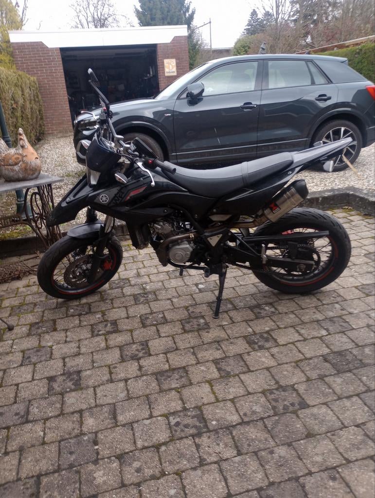 Deze yamaha wr125x uit 2011 is zwart en heeft rode accenten op de velgen. De motor heeft een sportieve uitstraling. Op de foto's is te zien dat de motor in een nette staat is. Deze motor was van m