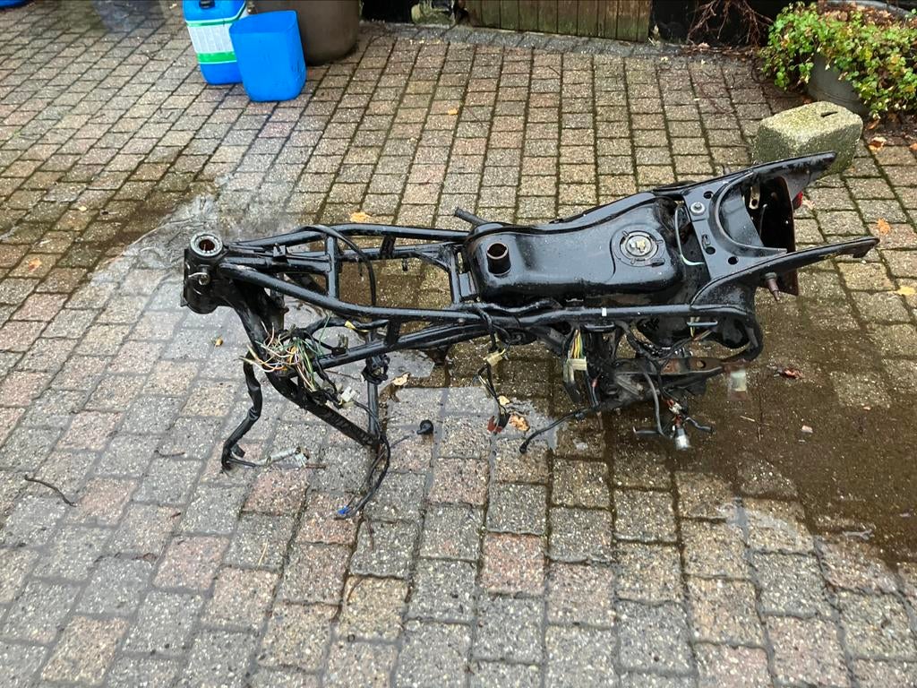 Frame van gl1100 met elektriciteitsbundel. Bedieningsknoppen remmen.