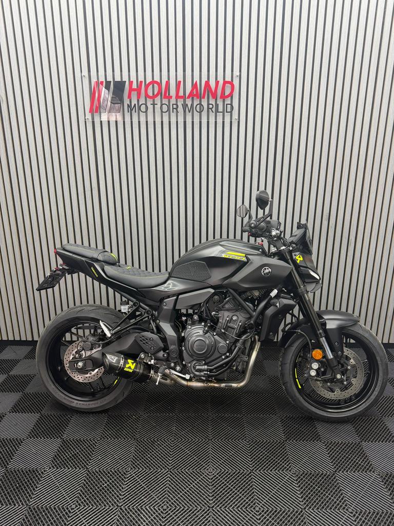 Te koop aangeboden: yamaha mt-07 (2025) in een zwarte vr46 uitvoering. Afkomstig van de eerste eigenaar en professioneel door ons voorzien van exclusieve gele accenten. Slechts 3.256Km, volledig deale