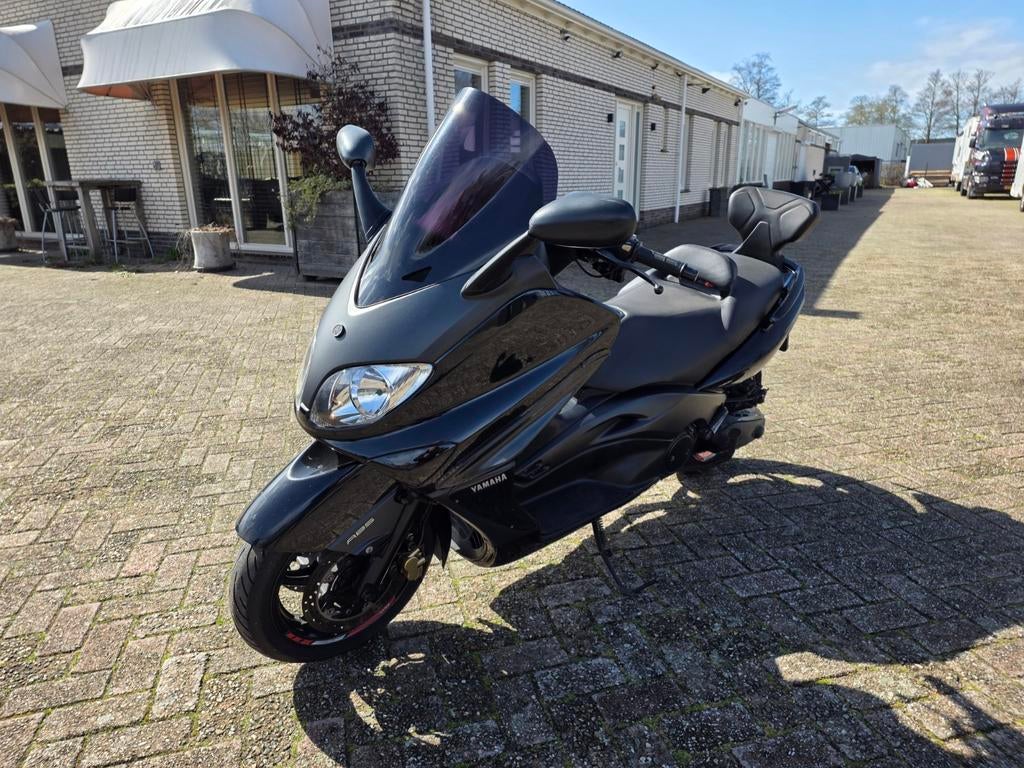 Mooie, goed rijdende yamaha t-max 500cc scooter uit 2006. Deze scooter is voorzien van een speciale uitlaat en de verlichting is zwart gemaakt voor een unieke look. Daarnaast beschikt de scooter over