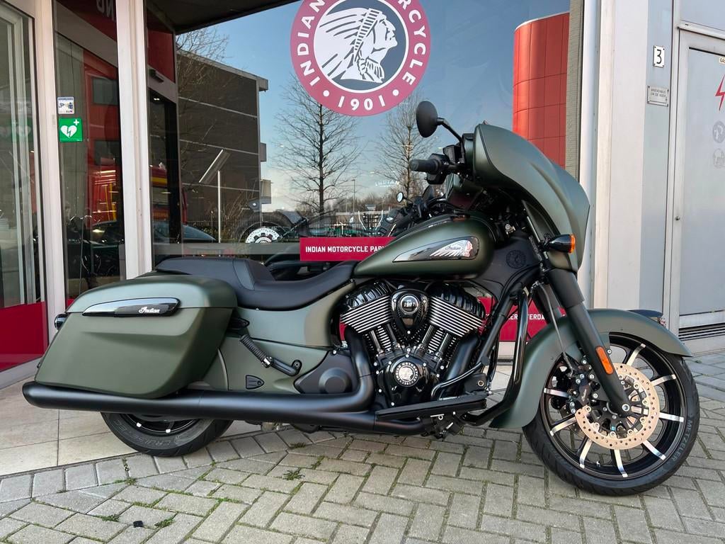 Nog niet ingereden en als nieuw . Chieftain dark hors in de kleur sagebrush smoke . Luchtgekoelde thinderstroke 116'' met navigatie , apple car play , rijmodus , elektrische ruit etc. Transmis