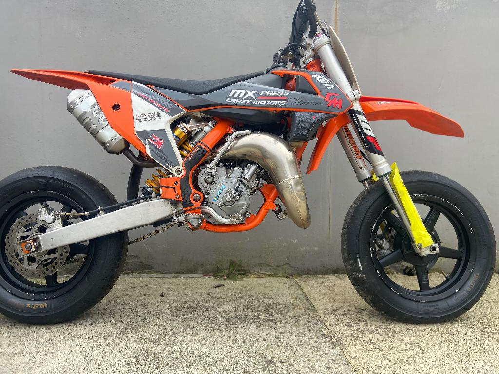 A vendre ktm65 sx 2019, mon ohlins, dispo en kit supermotard et cross. Bras oacillant compatible grande roues