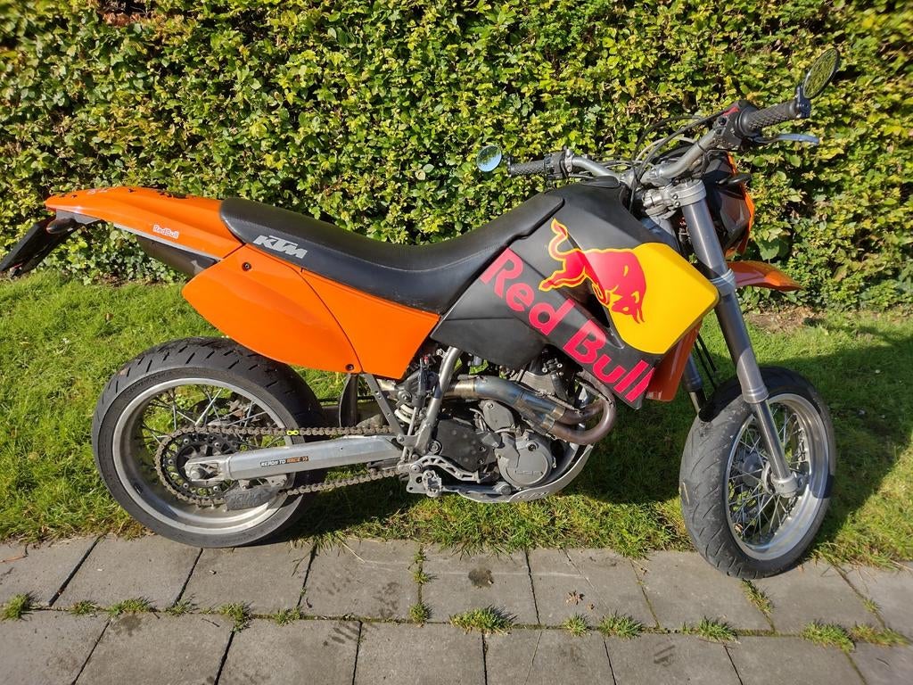 Ktm supermotard 2003 met veel accessoires . Titanium akrapovic uitlaat met demper, originele uitlaat nieuwe voor- en achterband, nieuwe remmen, en ketting met tandwielen, extra nieuwe batterij + nieuw