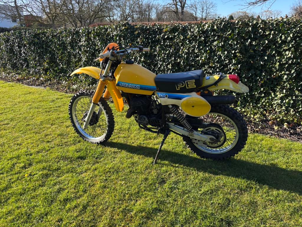 Suzuki pe 175cc staat geruime tijd stil , zelf op te starten. Verder zie foto’s. Prijs 1450€. Enkel aankoop factuur . Framenummer en typeplaatje zijn goed leesbaar . Bij interesse graag een beric