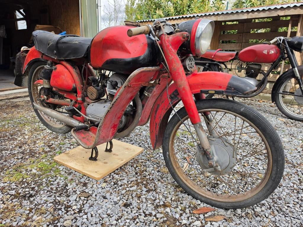 Complete motorfiets met origineel italiaans document en libretto. Jaar 1956. De fiets start heel goed. (Met luier) uitgang van de schuur.