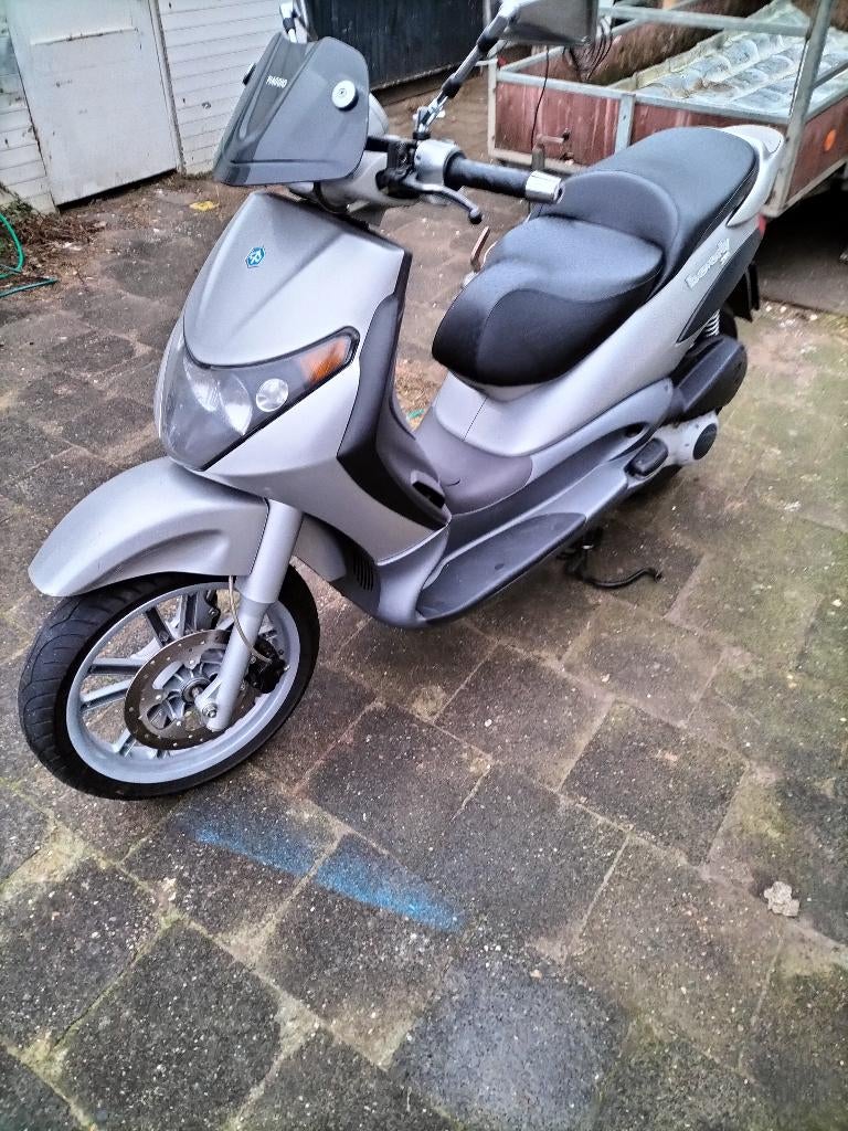 Piaggio beverly 200cc 4takt kleur: zilver bouwjaar 2002 1e eigenaar belgië weinig km 17.000 Topsnelheid 130km + compleet belgische documenten 3 koffers 1x topkoffer en 2x zijkoffers zilver 2x windsche
