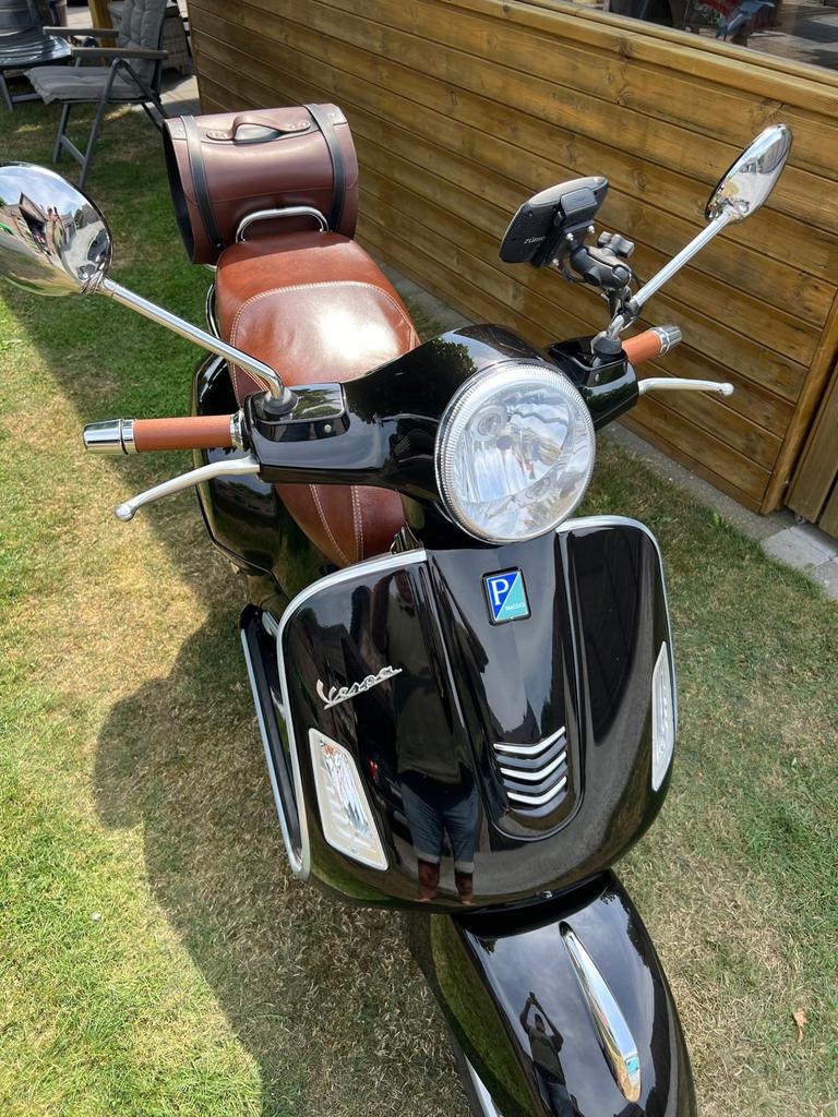 Zeer goed onderhouden vespa, altijd droog in de garage gestaan. Bouwjaar 2017/ 9800 km. Vespa met gps en bruin leder zadel.