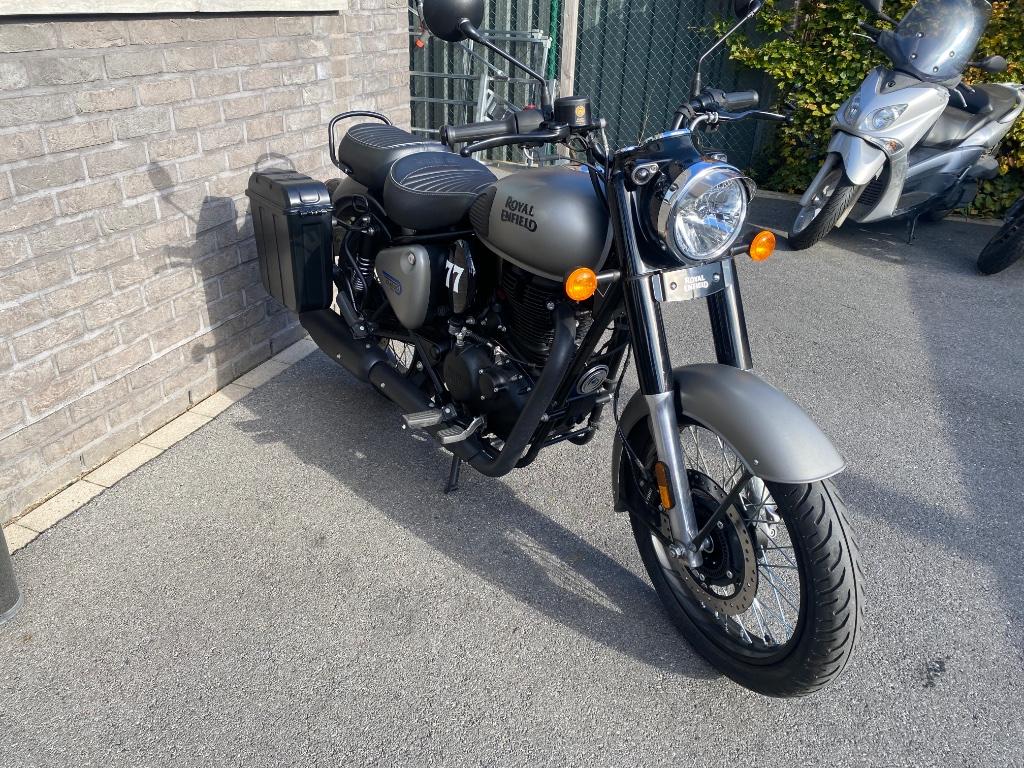 Type: royal enfield meteor 350 classic soort: naked bike kleur: mat grijs cilinderinhoud: 350cc aantal cilinders: 2 opties : zijkoffer prijs : €4300 bouwjaar:2022 kilometerstand: 3000 km