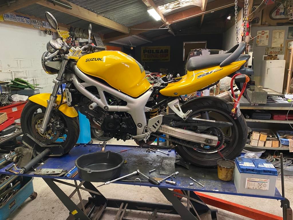 Suzuki sv 650 2000 ou 2001 ( même modèle ) bicylindre en v. La moto est resté un moment à l arrêt, le moteur tourne mais à du mal à monter dans les tours et ne tient pas le ralenti, un réglage est au